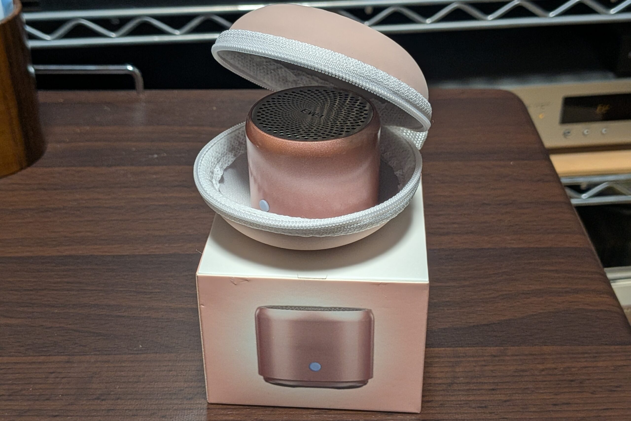 Bluetoothスピーカー オーディオ 2026年4月5日(日) 12:34 オーディオ関係のグループで知ったBluetoothスピーカーです。小さいけどずっしり感があって、ボーカルも明瞭で音質もかなり良いです。下面にウーハーが付いていて、しっかりとしたところに置くと低音もそれなりに出ます。これで立派なケースも付属して税込2,200円というのは安いです。片付けなどの作業中に気楽に聴くのに最適です。