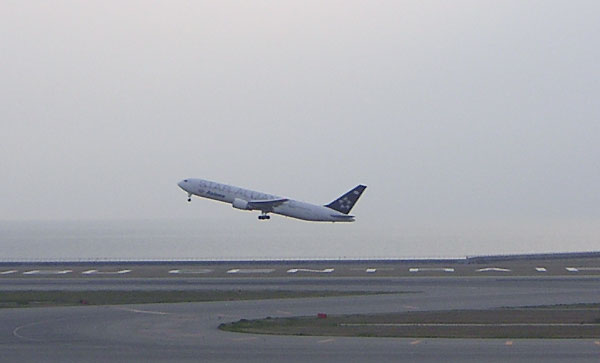 国際線と国内線を分けるように長く突き出たセンターピアの上に作られたスカイデッキ。一番先まで行くとかなり近いところで発着の航空機を見ることができます。伊吹おろしの影響を考慮して北から南へ離発着という形になっています。気象の変化なのか予想に反して伊吹おろしよりも鈴鹿おろしの西風の方の影響が多くなっているということも新聞には書いてありました。海の中に浮かぶ空港としては、そういうことに敏感になってしまうのは仕方がないのかも知れません。