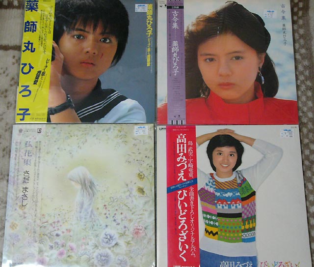 LPレコードは写真の4枚で、しめて税込み735円。さだまさしの「私花集」が何枚かあったので帯付を1枚、薬師丸ひろ子のおっとり系の音程危うそうな澄んだ声が聴きたくなって2枚。それと私が好きな松ヶ根親方のおかみさんじゃない、高田みずえのLPを1枚です。