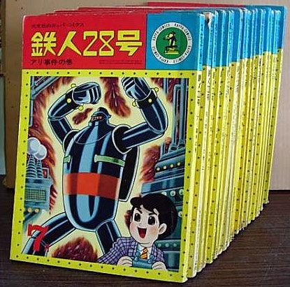 商品は、1964年から66年にかけて発売された光文社カッパコミクス(コミックスではありません)の鉄人28号全20巻。連載されていた月刊少年漫画雑誌「少年」から話を切り出して読み切りにして月刊で発行されていました。読み切りにするために、ストーリを一部変えたり省略したり、三段のコマ構成を四段にするためにコマわりを変えたりと、今思うとオリジナルを崩してしまった元凶でもあるものなのですが、このカッパコミクスとテレビ放送の時期が同じであったため、鉄人28号はこのカッパコミクスで知ったというファンが多いのも事実なのです。私もそのひとりで、鉄人といえばカッパコミクスという思い入れがあるのです。