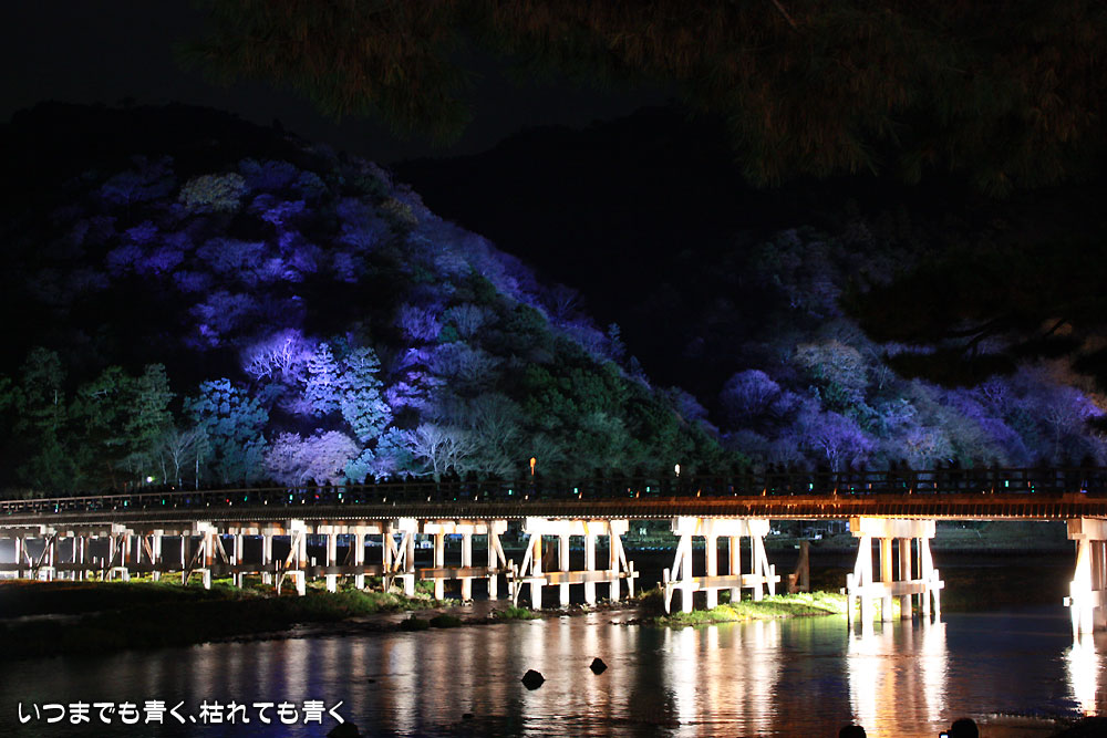 ライトアップされた渡月橋もすばらしいです。昼間見た雰囲気とは違い、背景の嵐山のライトアップと相まって幻想的で神秘的な光景を見せてくれます。