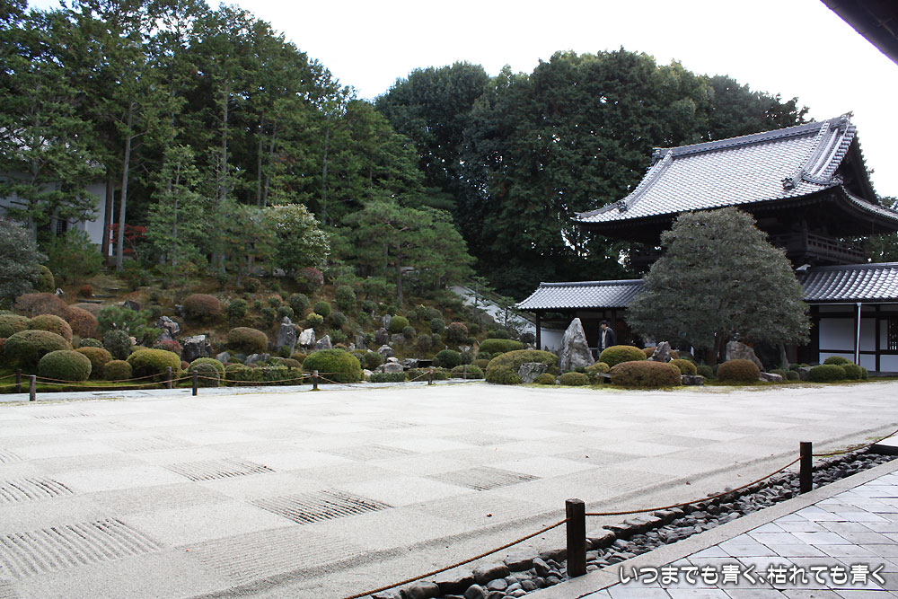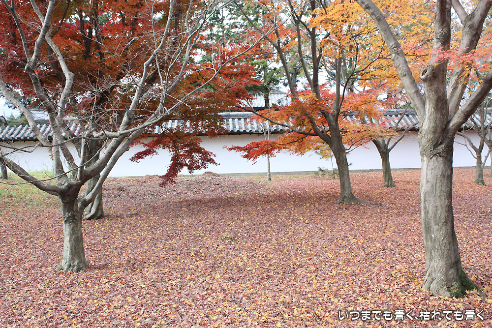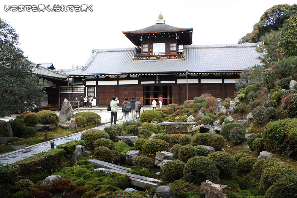 東福寺の三門もすばらしい三門ですが、南禅寺と違って中には入れず、外から眺めるだけなのが残念です。ただ、ここの見所は紅葉。今回はすでにその時期は終わっているために人は少ないですが、紅葉の時期は中にある通天橋は人でごったがえすそうです。そこからみる紅葉は素晴らしいと聞いていますが一度見てみたいものです。今はその紅葉の落ち葉が地面一面に落ちていて、その美しさの余韻が残っています。