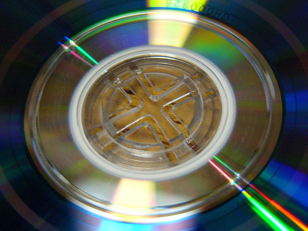 正常なディスクは、左の写真のように、青く蒸着した部分がきれいな円形になっています。
