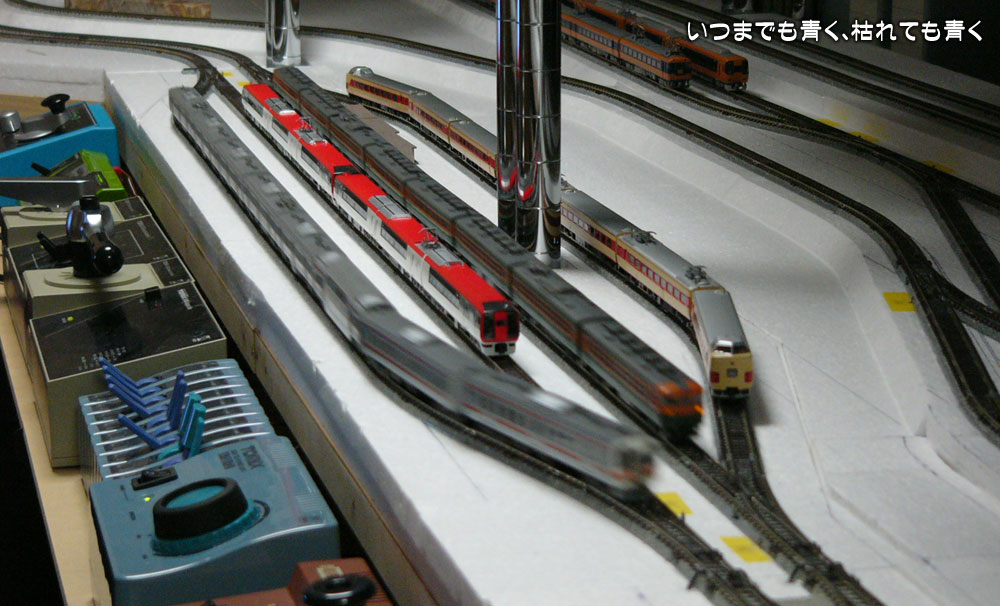 レイアウトの長い直線区間を8輌編成が疾走する姿はたまりません。