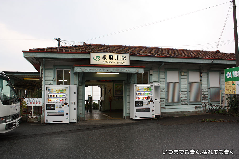 今回の旅の最初は、東海道本線で唯一の無人駅である根府川駅。海が近くて景色の良い駅ですが、関東大震災で海の中に列車とともに沈んだという悲劇の駅でもあります。その犠牲者追悼碑が構内に設置されています。駅舎の高さが跨線橋の高さと同じで、緩やかにカーブしている2面3線のホームは駅舎よりも下の位置にあります。