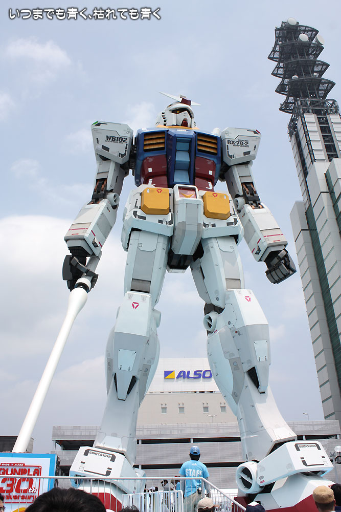 娘たちが大満足でおおはしゃぎだったのはもちろんなのですが、ガンダム世代からはまったく外れている私でも、目の前にそびえる勇姿を見るとなんか感激してしまいましたね。何枚も写真を撮影していました。もちろん、足元で嬉しそうに笑っている私の写真もちゃんと娘に撮影してもらいました。(でも、鉄人28号のほうがカッコいいと思っていますので、その写真は掲載しませんけどね。)