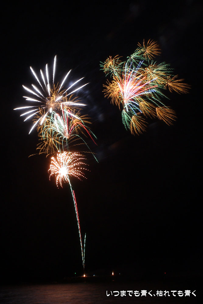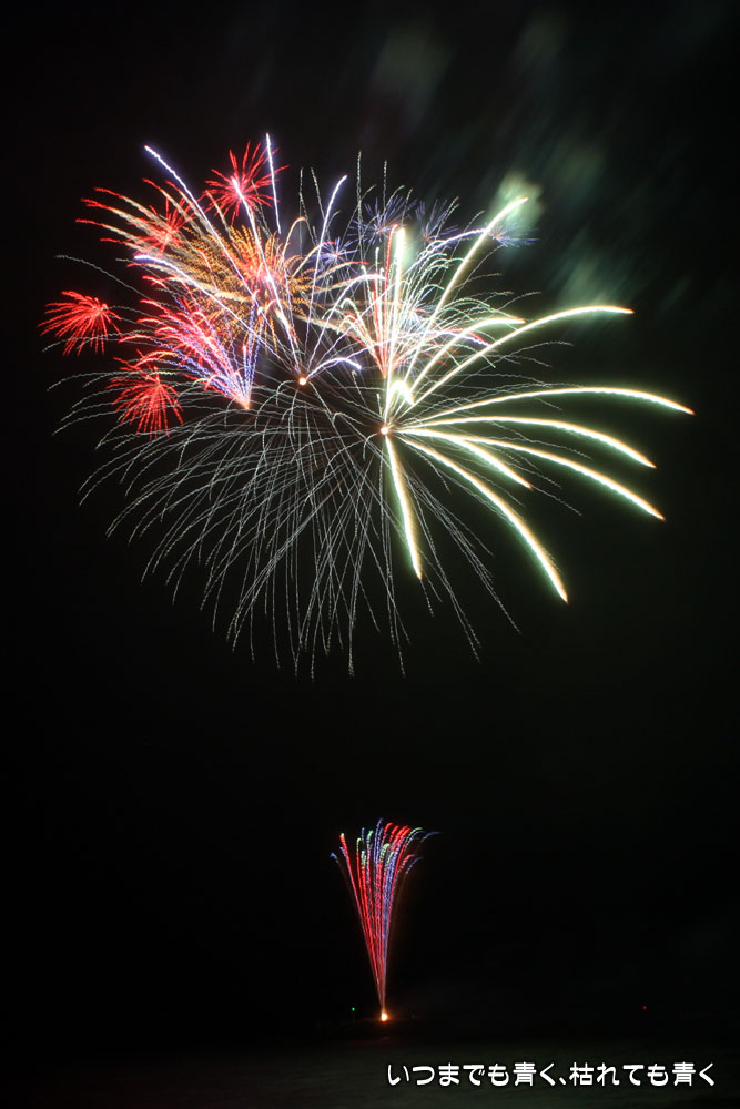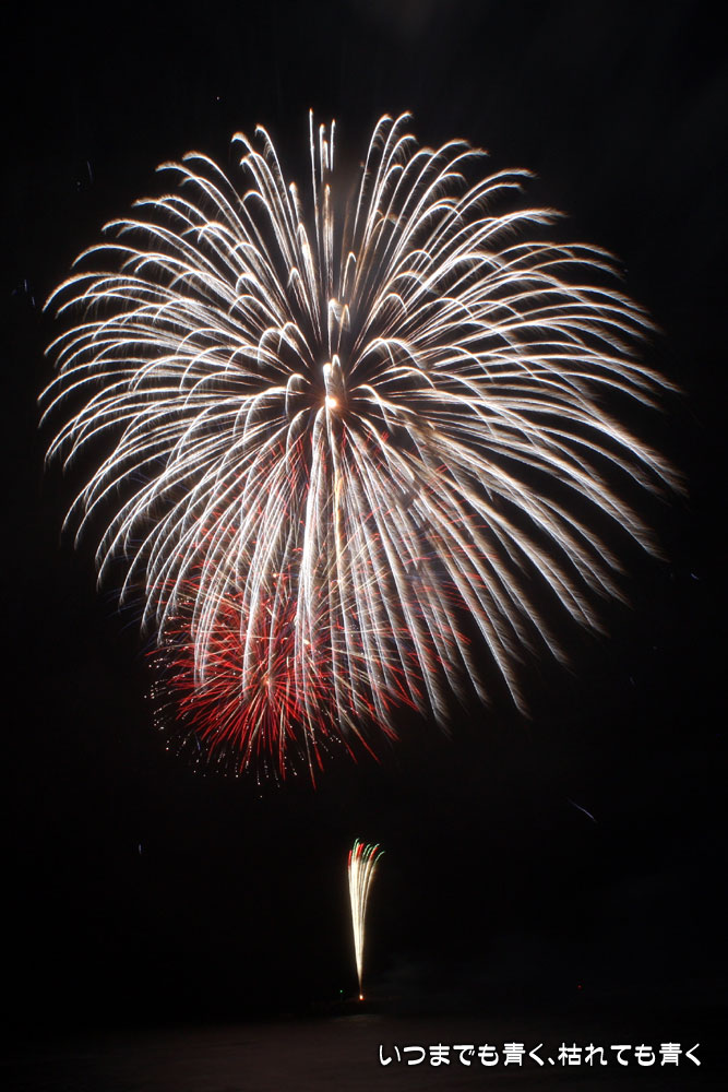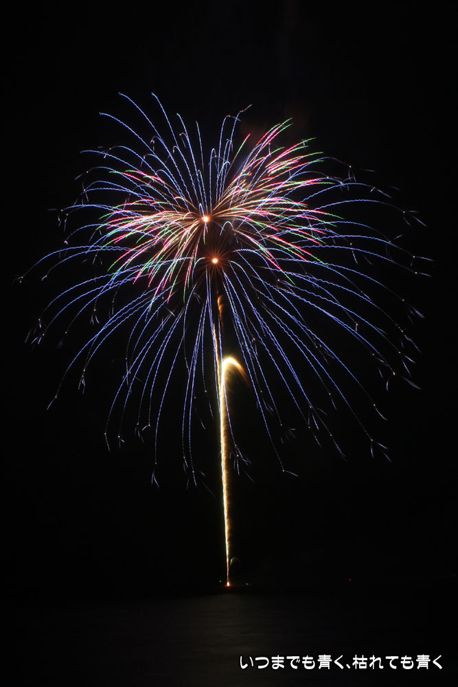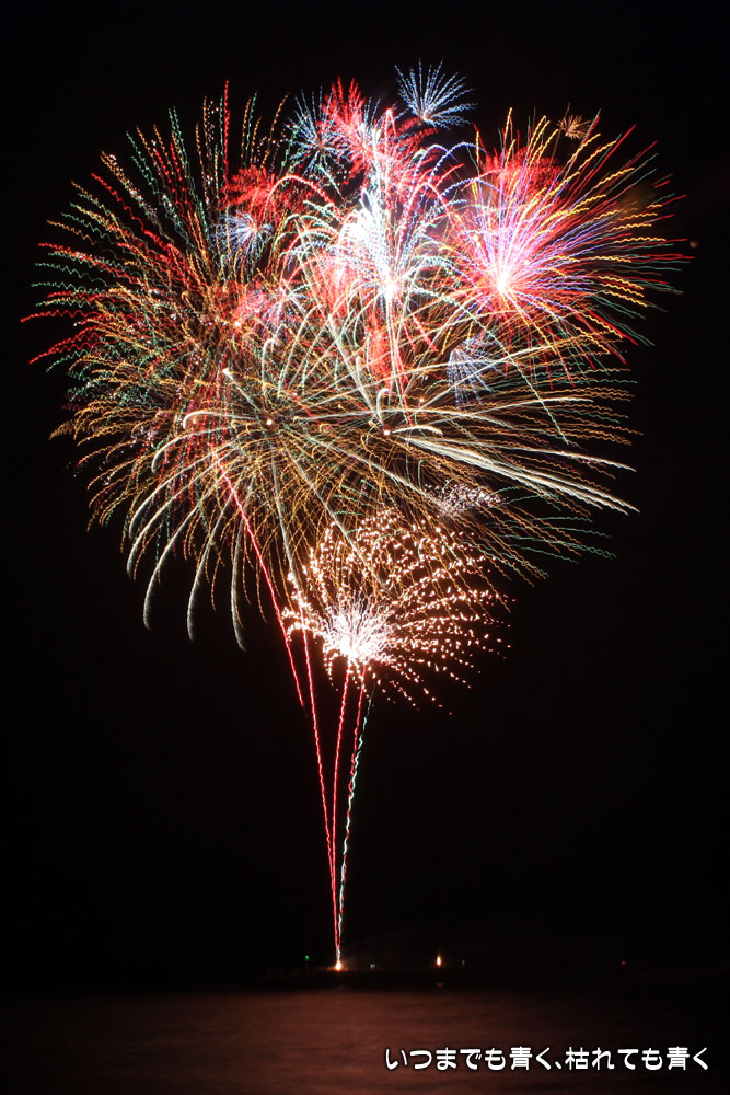 今回掲載する写真の花火は暑い夏真っ盛りの8月初旬に撮影したものですので、別に季節外れの花火ではないのですが、今の時期に花火の写真を見ると「冬の花火はおもいで花火」をついつい口ずさんでしまうのですよね。あの夏の賑わいが夢のように遠くに感じてしまうのでしょうかね?。