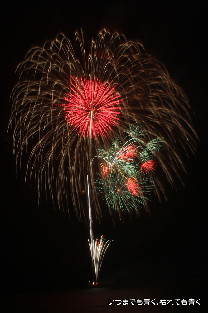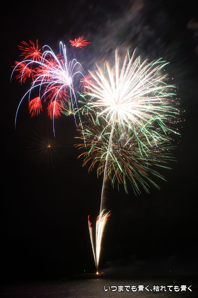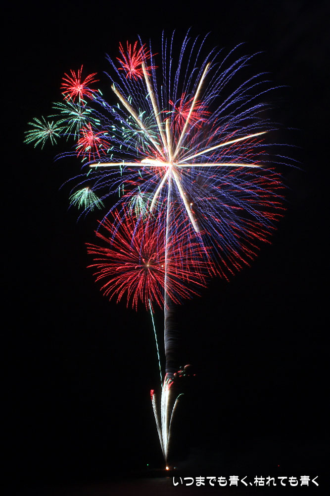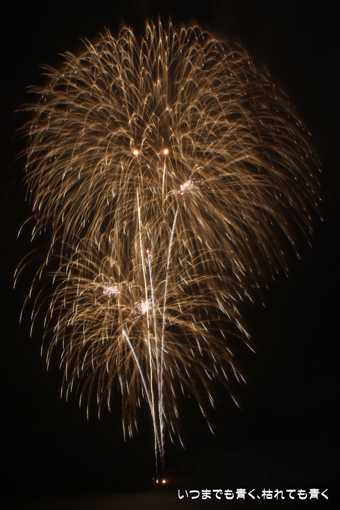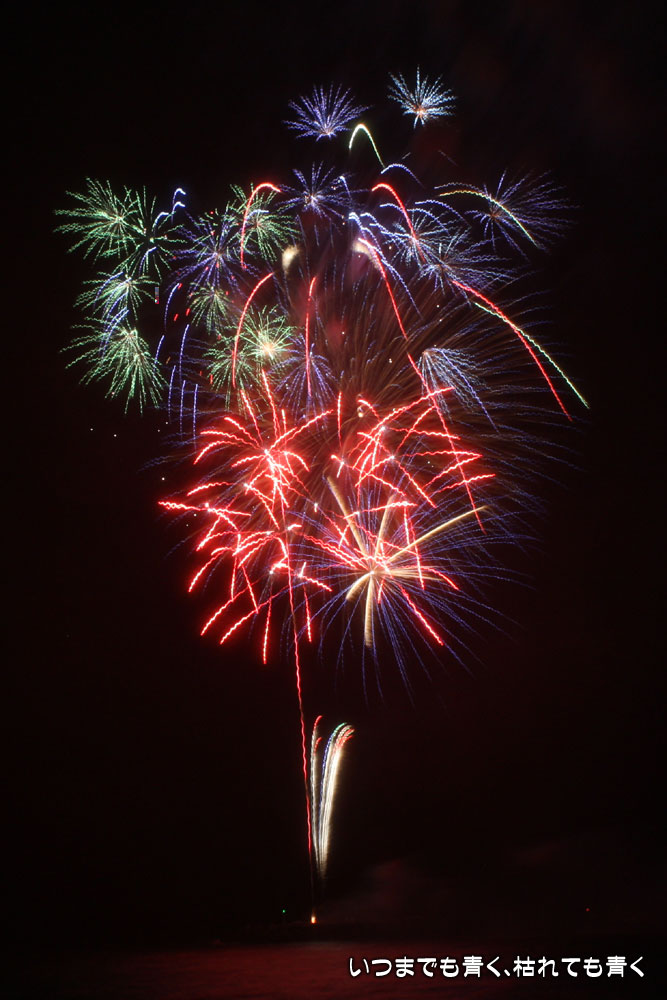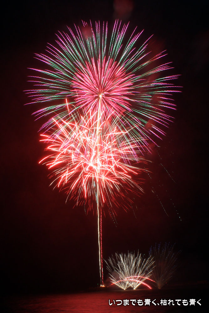 今回掲載する写真の花火は暑い夏真っ盛りの8月初旬に撮影したものですので、別に季節外れの花火ではないのですが、今の時期に花火の写真を見ると「冬の花火はおもいで花火」をついつい口ずさんでしまうのですよね。あの夏の賑わいが夢のように遠くに感じてしまうのでしょうかね?。