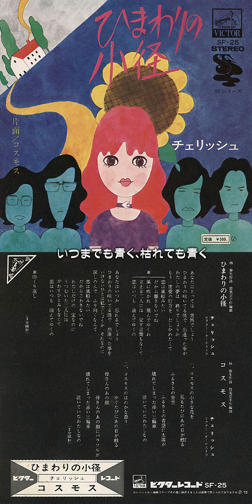 私の場合、コスモスを見ると真っ先に口に出るのは、チェリッシュの「コスモス」という歌です。チェリッシュのヒット曲「ひまわりの小径」のB面の曲なのですが、なぜか頭に残っているのです。たぶん、ほとんどの誰もが口ずさめない歌だと思います。
