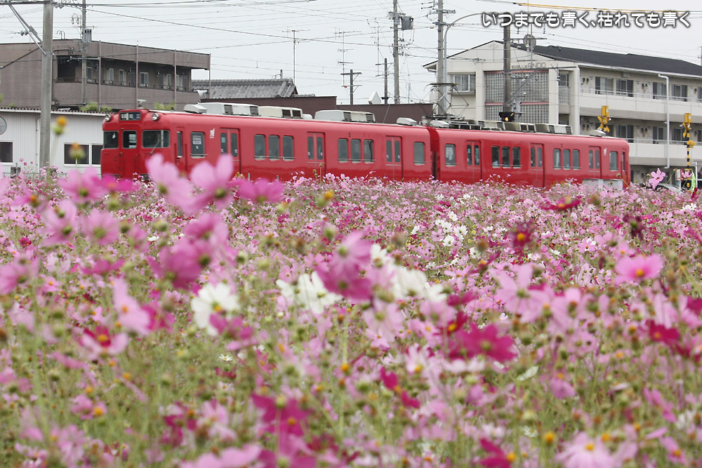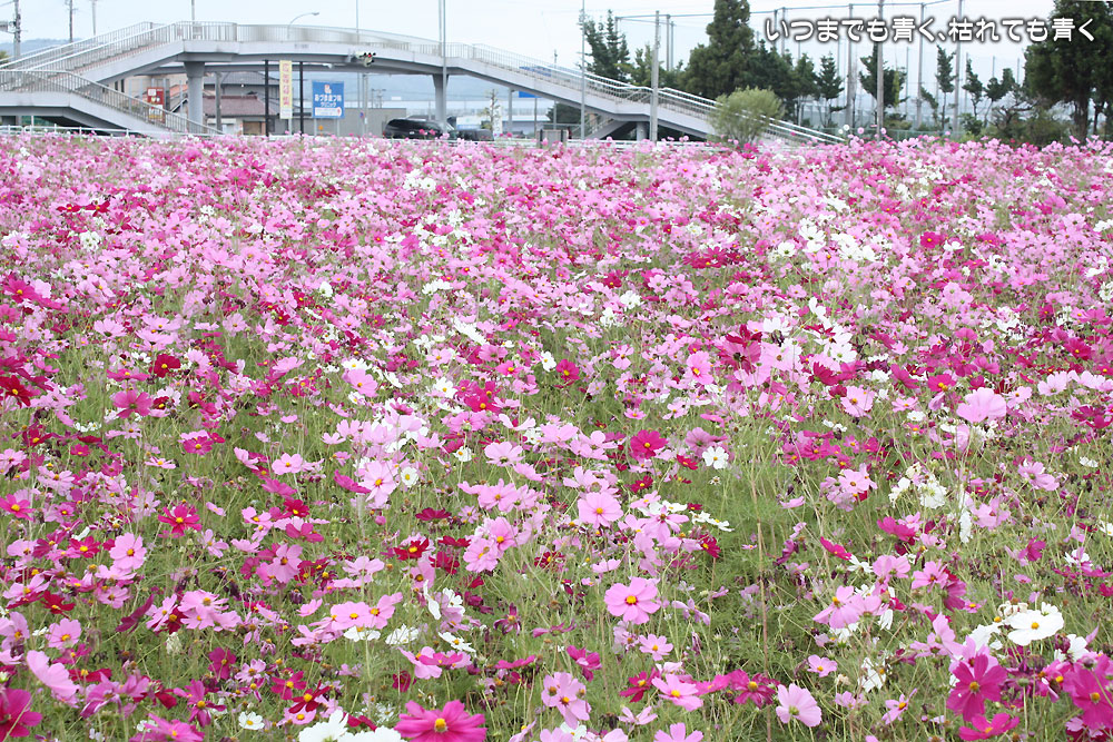 この季節、クルマで走っていると「こんなところに」と思う場所でコスモスが咲き誇っています。