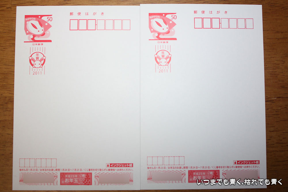 ![]() 左が今年の年賀はがきに印刷 右が昨年の年賀はがきに印刷 | ![]() 問題の年賀はがき |