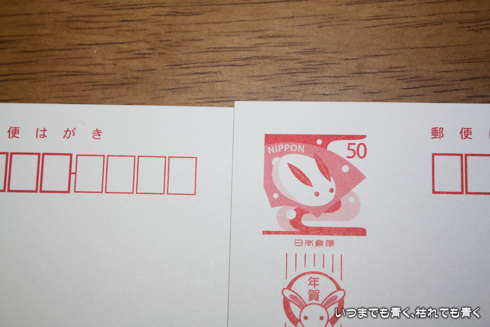 そこで、昨年の年賀はがきに試し印刷したものと比べてみると・・・