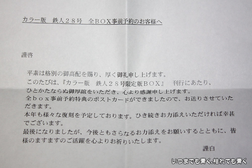 お世話になっている書店で全BOXを事前予約したので、その旨を書いてもらった書類を作ってもらって小学館クリエイティブに送っていたのです。