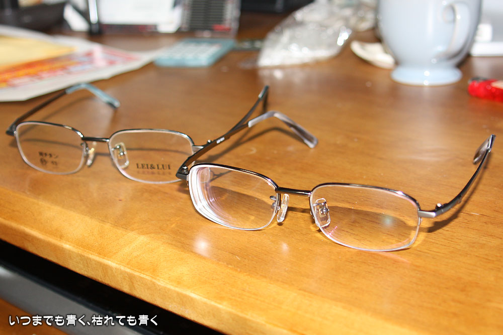新しいフレームにしたらなんと見やすいこと。やはり眼鏡は少しでも中心がずれるとダメなんですね。特に遠近両用のレンズだと微妙な位置ずれでも見にくくなってしまうようです。これからはこまめに調整に行くことにします。