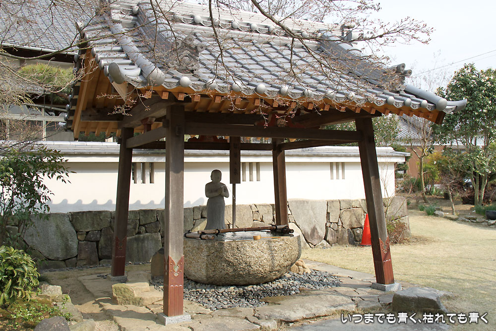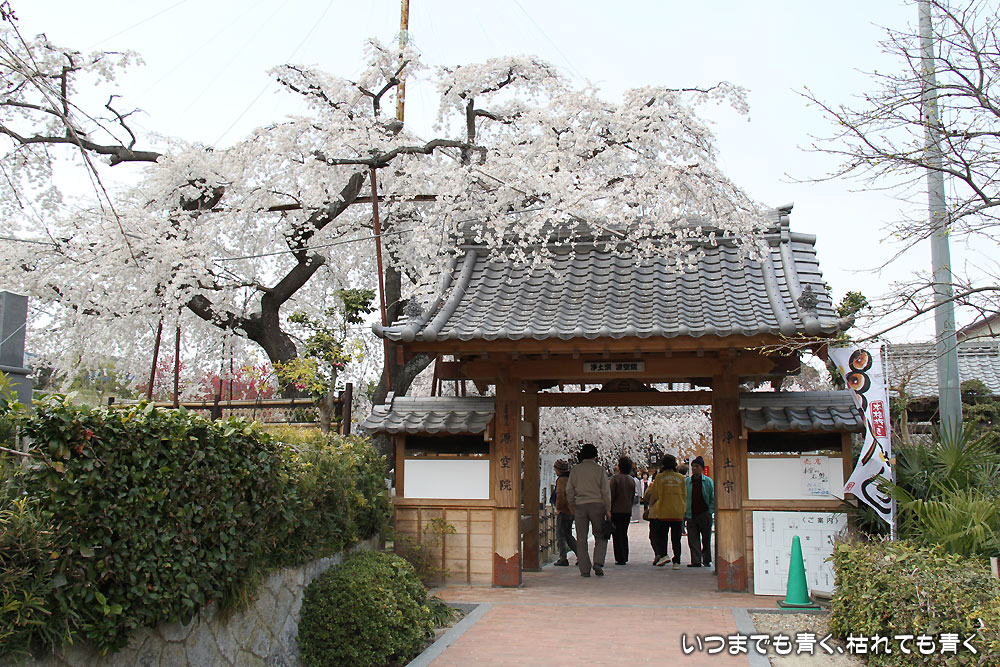 ![]() 山門 | ![]() 水屋、本堂、枝垂れ桜 |