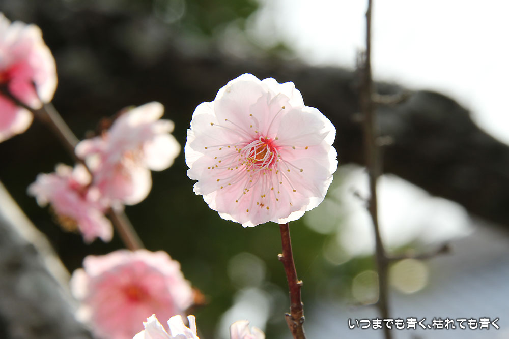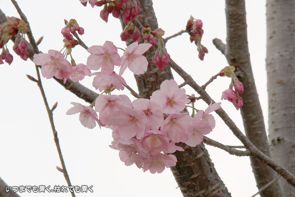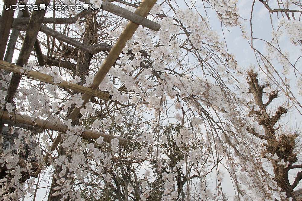 こちらの枝垂れ桜は、かなり弱っているのか、かなり支えなどを必要としており、花も気持ち元気がないかなという印象です。枝垂れ桜よりも椿の方が見ごたえあった感じでしょうか。
