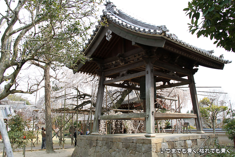 ![]() 山門脇の樹齢250年の枝垂れ桜 | ![]() 鐘楼 |