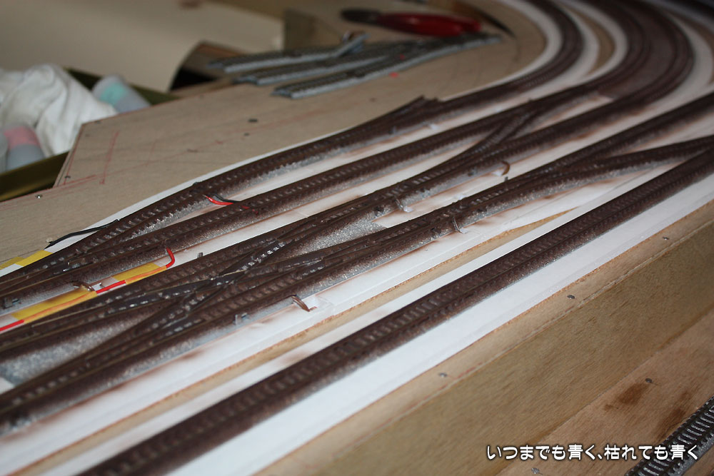 まだ未塗装線路が少し残っていますので、もう少しこの作業を続けます。