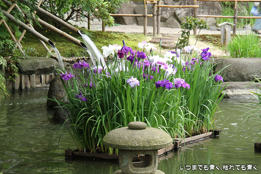 妙智池と放生池には、紫色の鮮やかな花菖蒲が見頃です。水との調和が素敵なのですが、写真にその雰囲気を残しておくには私はまだまだ撮影技術不足ですね。