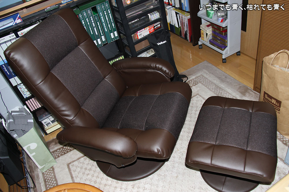 そして夕方には、先週注文しておいた、私の部屋の新しい椅子を引き取りに行きます。捨てるときも買うときも、ヴェルファイアはサードシートを折りたたんで大活躍です。今回買った椅子は、ソファではなくて、リクライニングができてオットマン付きのパーソナルチェア。デザインもいいんではないでしょうか。