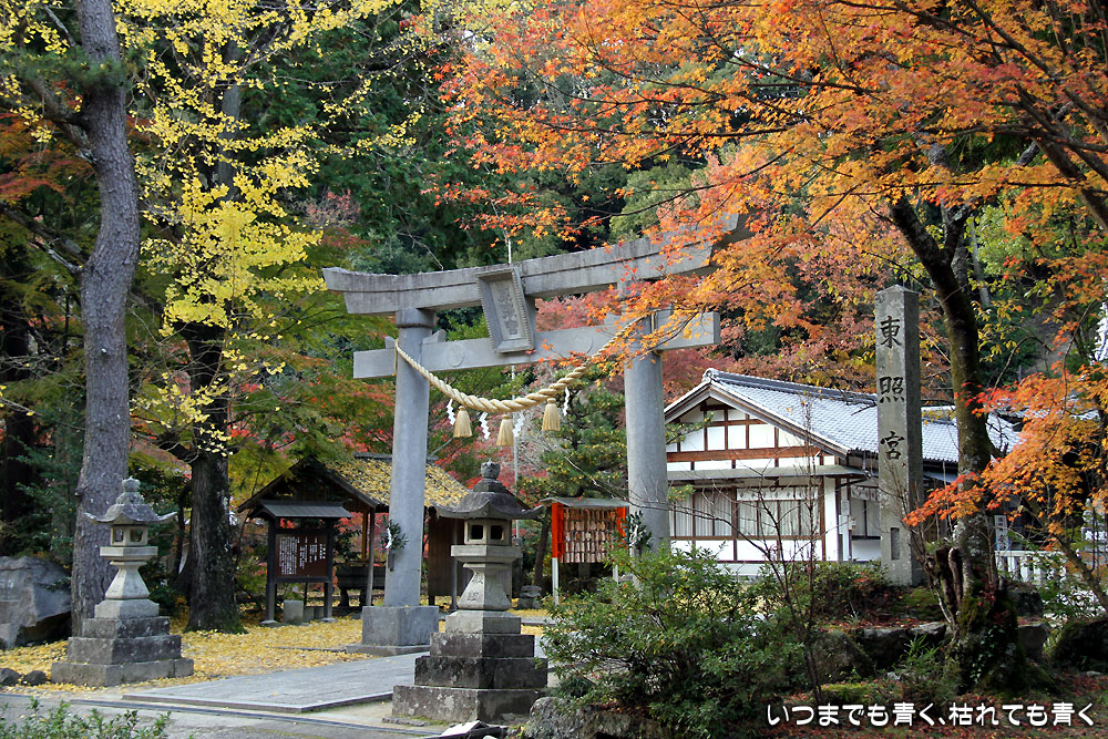 松平東照宮は、紅葉の赤色と銀杏の黄色と常緑樹の緑色の三色が色鮮やかでした。10月初に見た東照宮の右横の緑のイロハモミジが真っ赤になっていたら美しいだろうなと楽しみにしてきたのですが、その場所は紅葉には適さない場所のようで、緑色のまま枯れてかけていたのが残念でした。