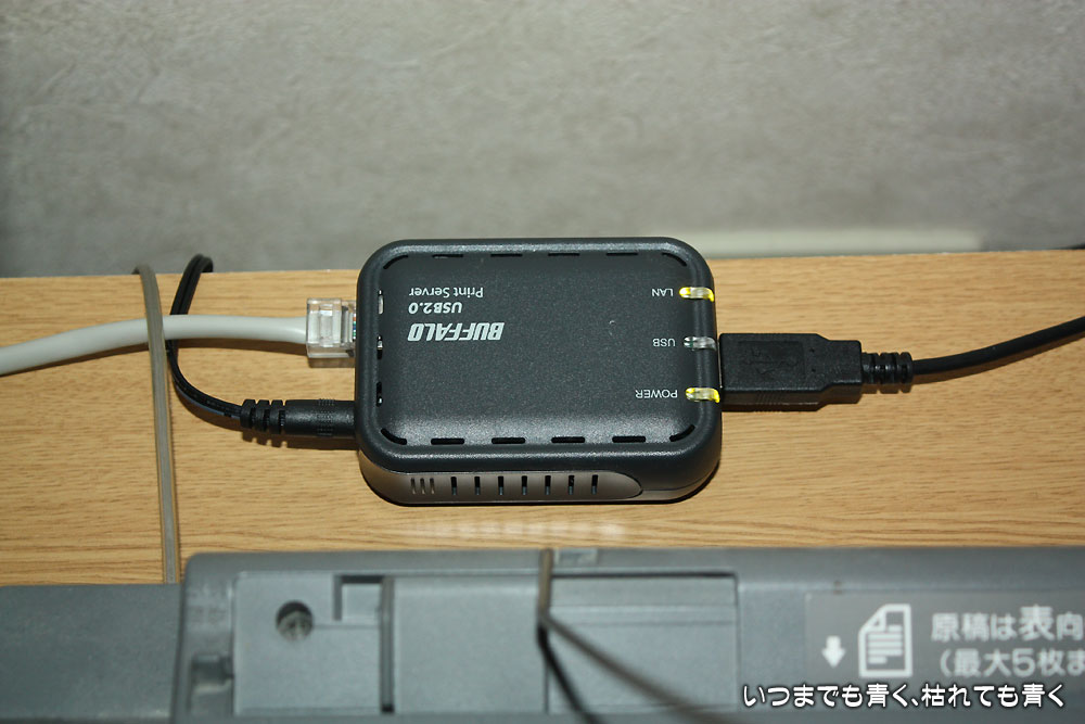 BUFFALOのLPV3-U2Sという有線プリントサーバを使って、リビングのCANON MP600を共有化します。