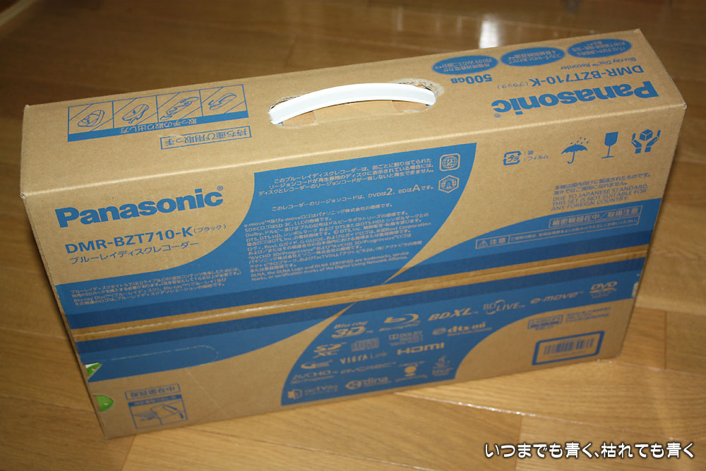 機種はパナソニックのDMR-BZT710-Kという製品。改装店じまいで安かったし、特別価格にもかかわらずバースディパスポート分を少し引いてくれましたし、価格.comの最安値と2千円くらいしか差がなかったし、そもそも、私の部屋にはデジタル対応の録画専用機がなくて不便をしていたし・・・