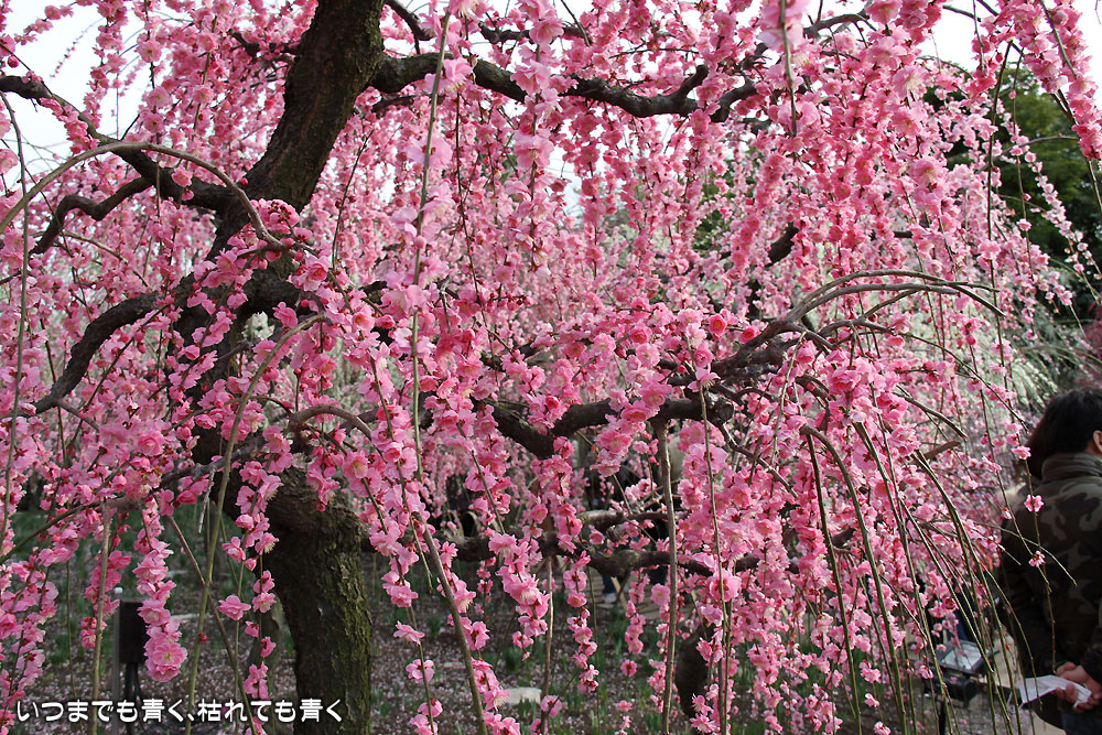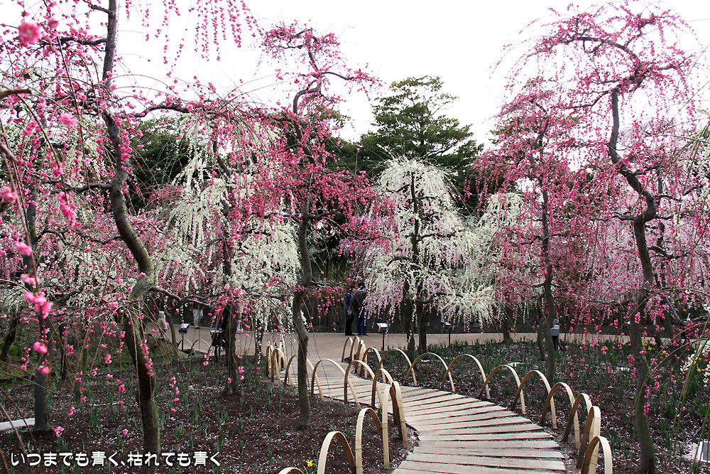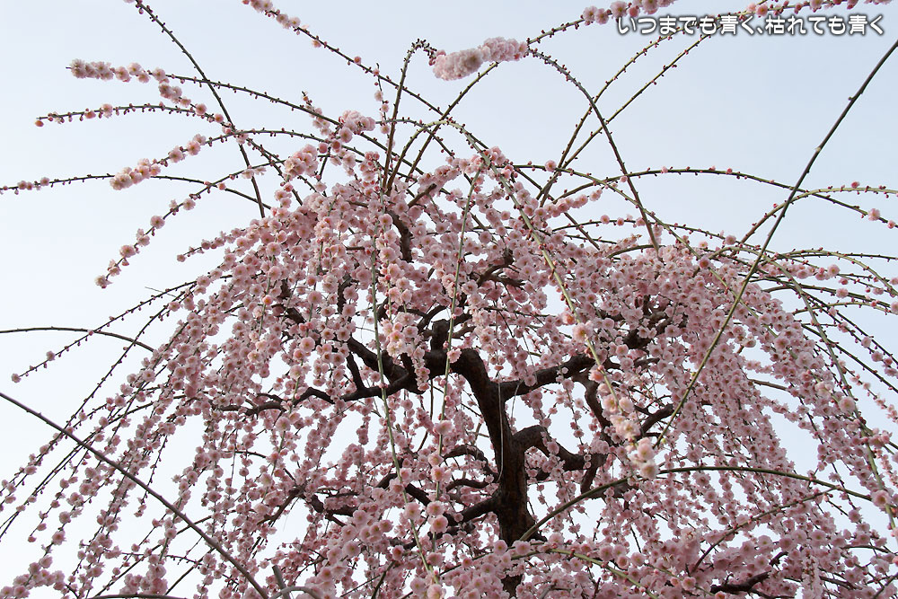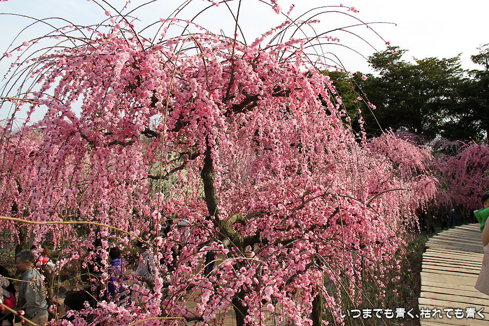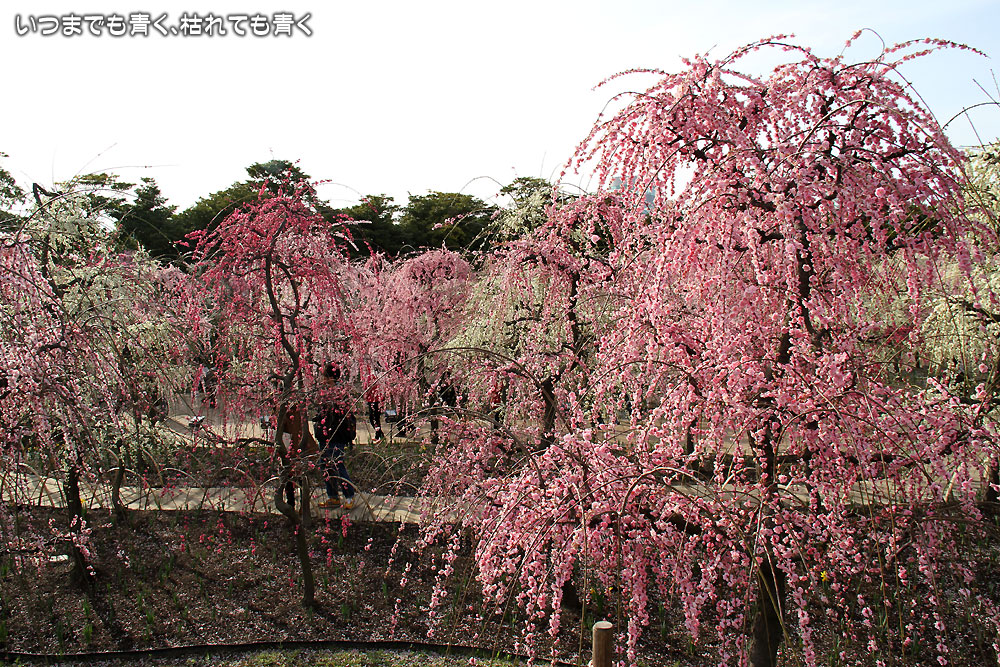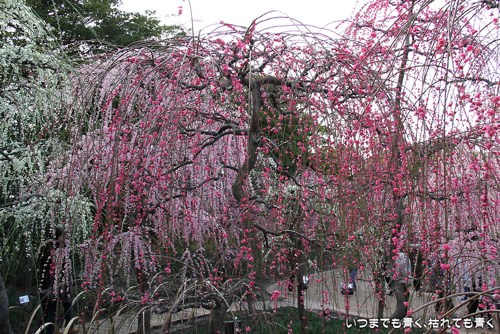 昼間のしだれ梅の梅苑。