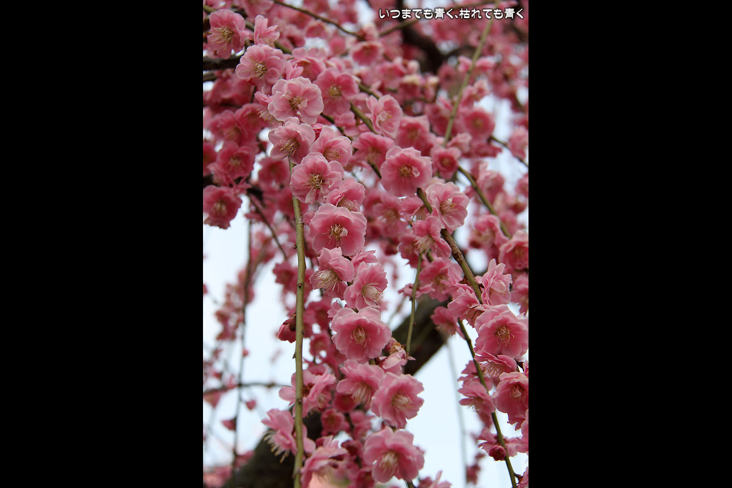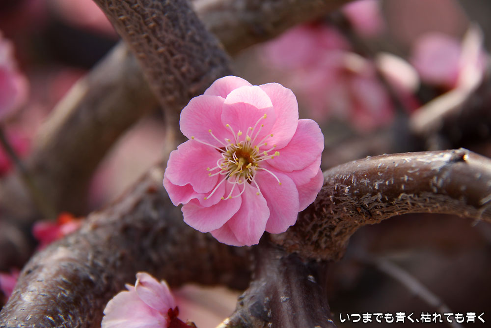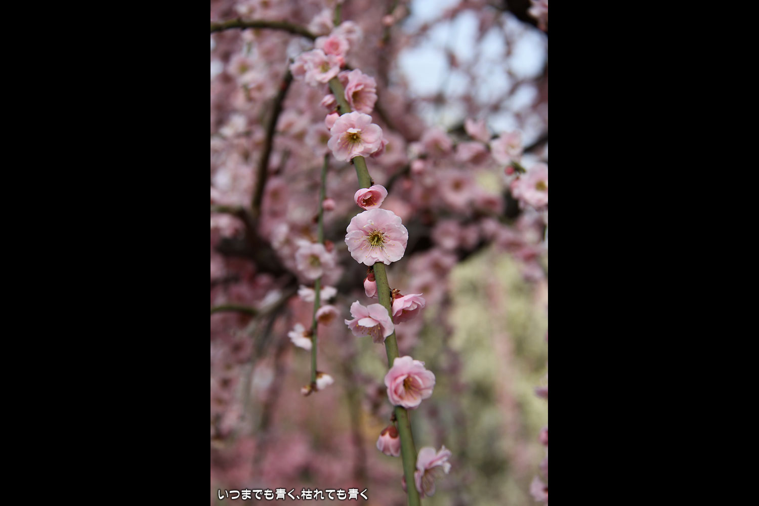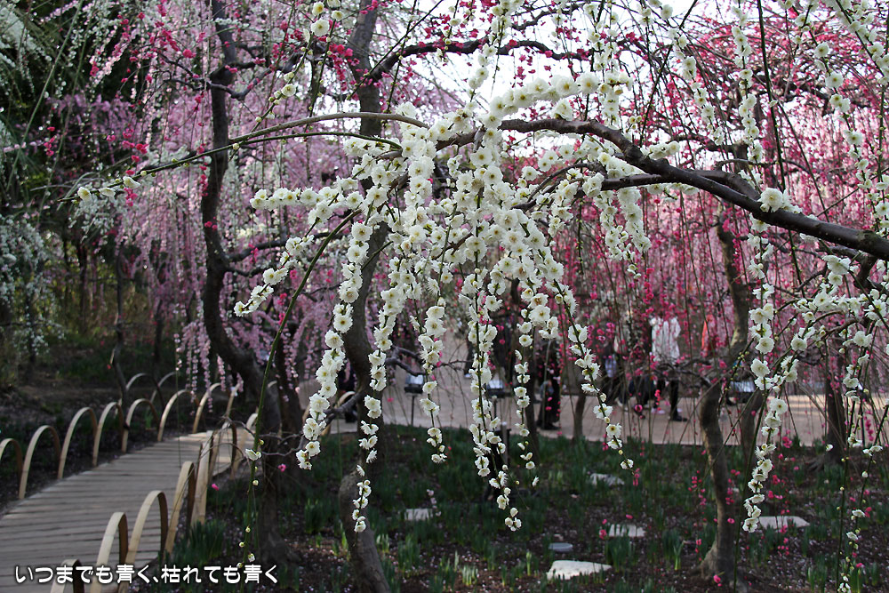 昼間のしだれ梅の梅苑。