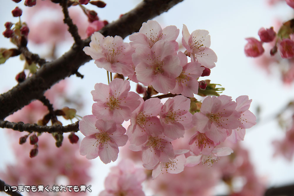梅苑の外では、河津桜も可憐な花を咲かせていました。
