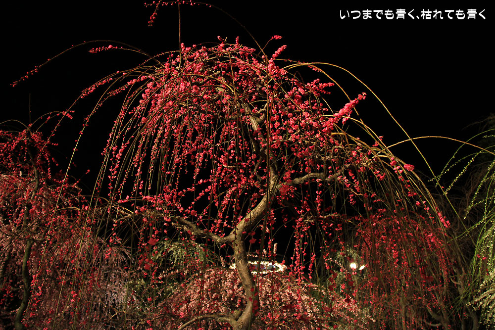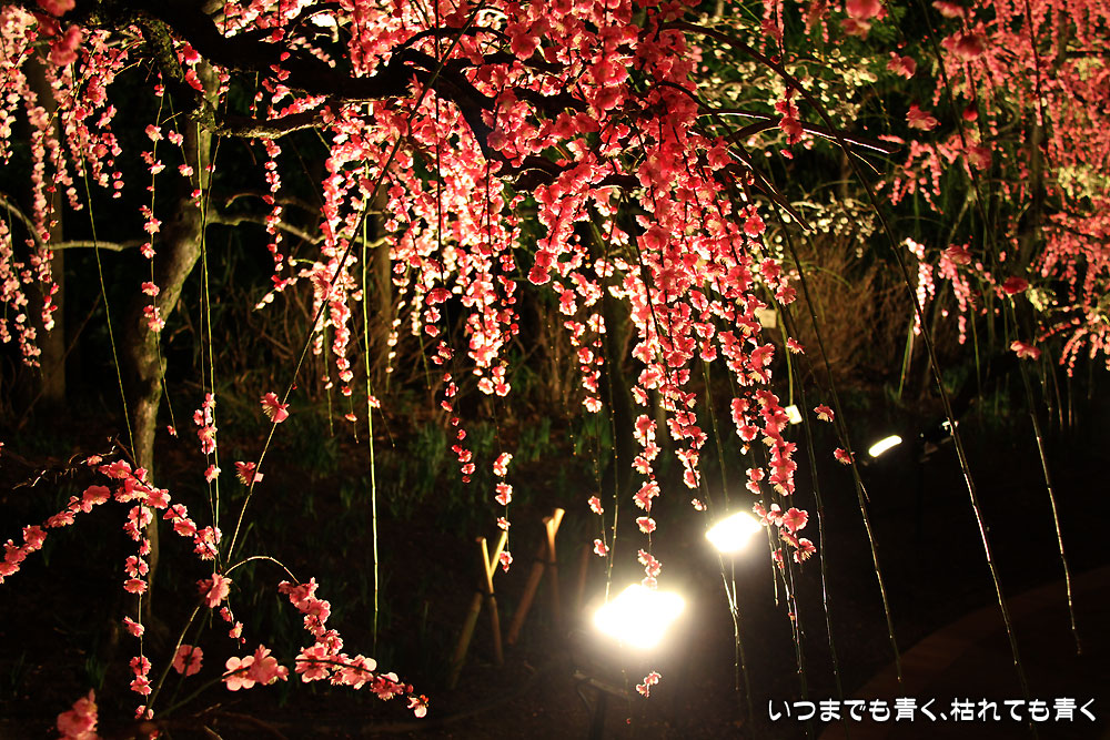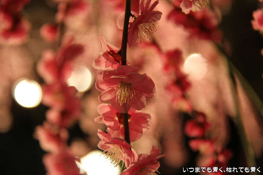 光に照らされたしだれ梅は、昼間とは違って、より存在感を主張していました。