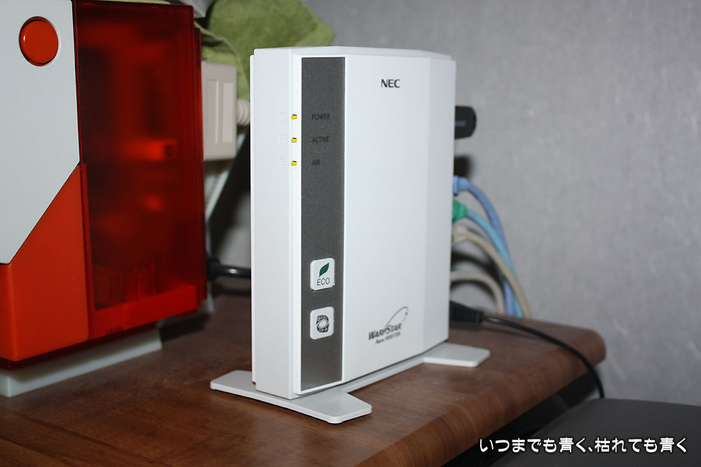 そこで、ハイパーロングレンジ、かつ動画共有のための5GHz帯が使用可能な無線ルータに交換することにしました。どこの製品が良いかとあらためて調べたのですが、BUFFALOは不安定という声があったので、今回も安心感のあるNECの製品にすることにし、イーサネットコンバータWL300NE-AG付きのハイパーロングレンジ無線ルータWR8600N(HPモデル)にしました。