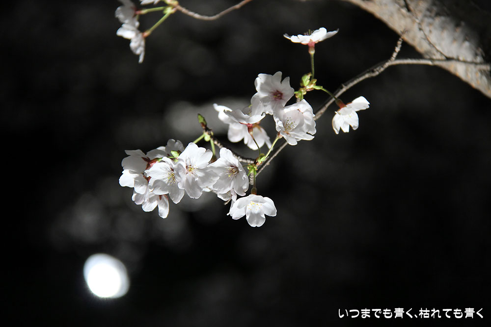 昼間の桜もすばらしかったし、ライトアップされた桜もより白色はより引き立って素晴らしかったです。寒かったですが、見に行ってよかったと思います。写真を撮るようになってから、こうして季節季節の趣を積極的に体感しようと思うようになってきたのは、私自身にとっても良いことだと思います。