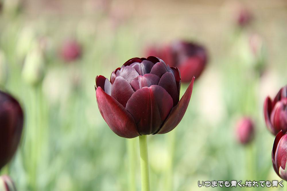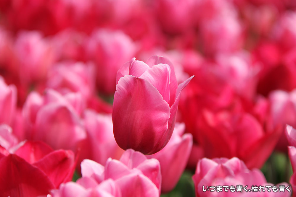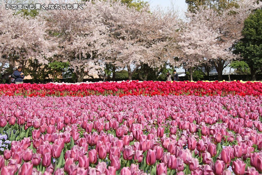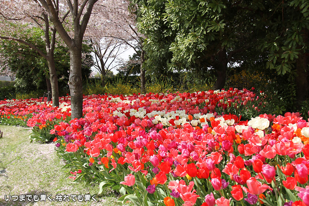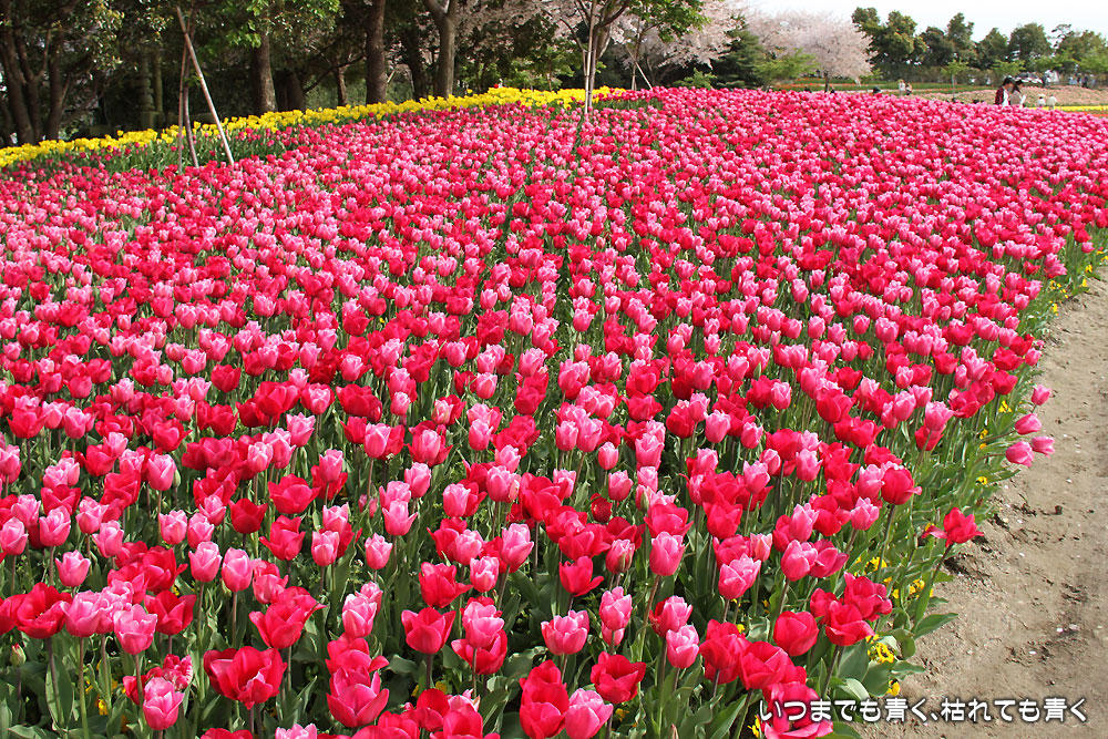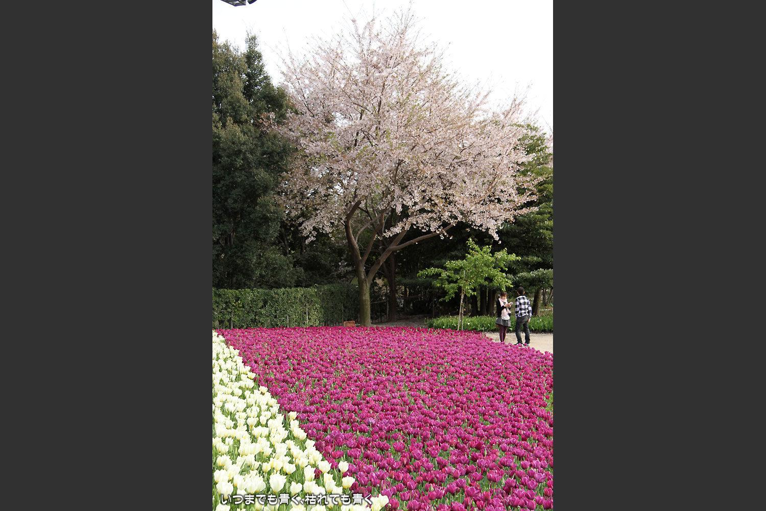 桜がまだ残っていましたので、桜とチューリップの競演ということで一緒に写真を何枚か撮ったのですが、主役である桜とチューリップを対等の配置で撮った写真は、どちらつかず中途半端な写真になってしまいました。主役級を一緒に写真に撮る場合には、どちらを主役で脇役かを決めた構図でないとダメだなぁということを勉強しました。また、これだけチューリップの数が多いと、どう何を撮れば面白い写真になるのか全然わからずじまいで、なんともセンスのない私です。どちらかというと、長女の写真のほうが構図的には面白いものが多かったりするのです。ちょっと悔しい気もしますが、ちょっと長女を見直したりもしています。