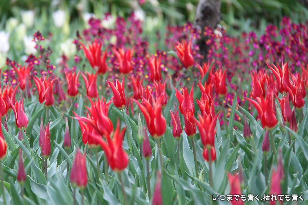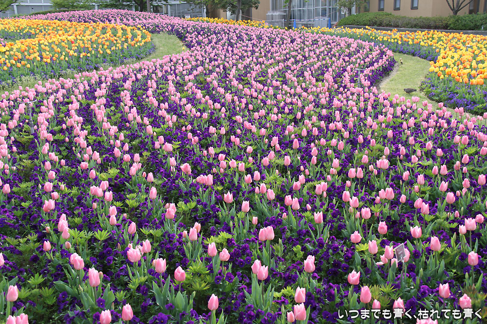 チューリップまつり開催中の花ひろば以外の里内の花々と景色です。