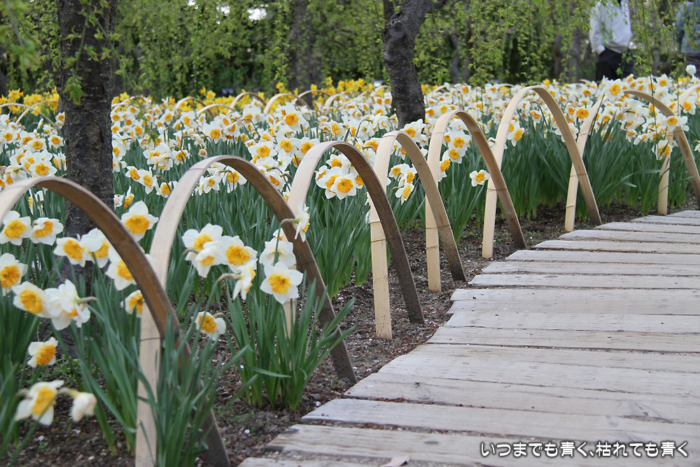 3月19日に訪れた時にしだれ梅が満開だった梅苑は、今はいろんな種類の水仙が満開でした。時期が少し違えばまったく違う楽しみ方ができるので飽きないですね。