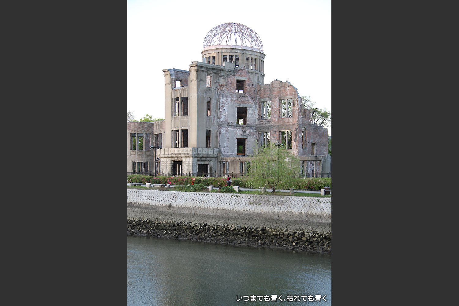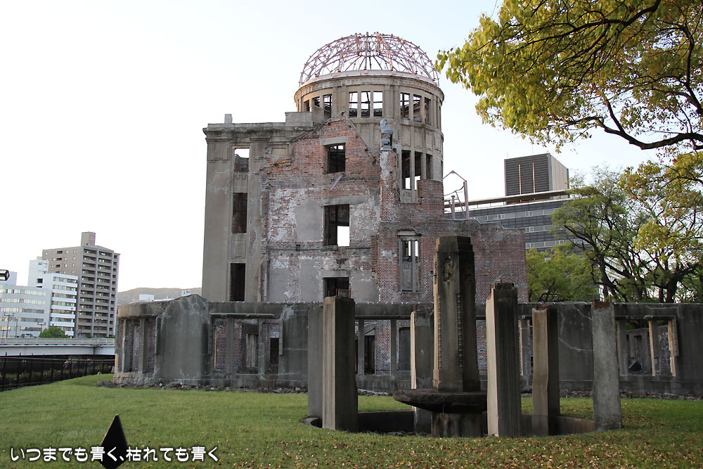 原爆ドームは、完全にモニュメント化していて、壊れ方など人工的な美しさを感じてしまい、ここで起きたあの悲惨な出来事と結び付けるには、あまりにも穏やかで美しくたたずんでいました。それがこの長い年月とまわりの変貌なのでしょうね。何も無い焼け野原に、この原爆ドーム(当時は広島県産業奨励館)がぽつんと残っていて、周りには亡くなった方や苦しむ人々がいた光景を想像するには、かなりの知識と想像力が必要でした。