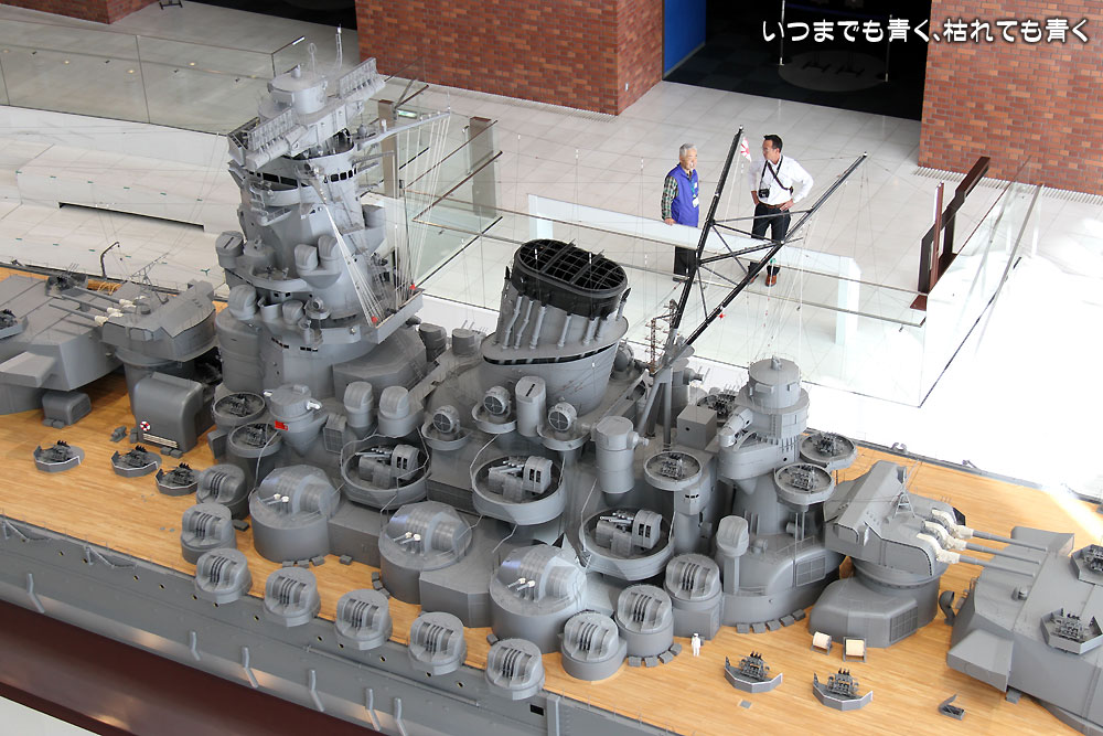 写真は、大和ひろばに展示されている、1/10スケールの戦艦「大和」の模型です。私は、戦艦「大和」というよりも、大型精密模型という観点で魅力を感じて見入ってしまいました。