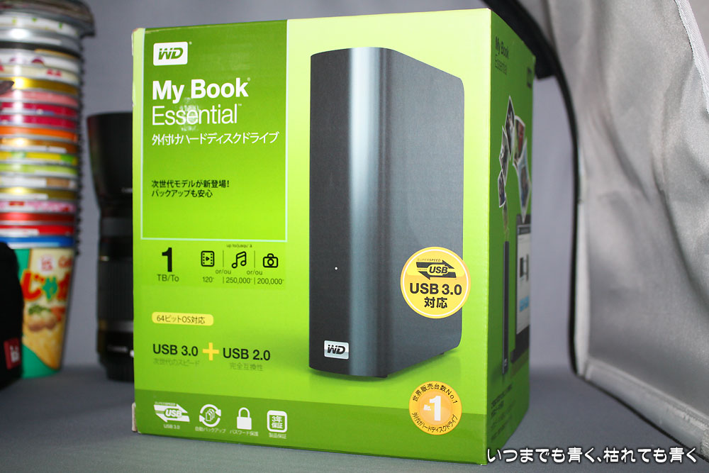 内蔵ハードディスクでいいかと思って探したのですが、1TBだと内蔵ハードディスクよりも外付けUSBハードディスクのほうが安いことがわかりました。しかも、WD(WesternDigital)の外付け1TBハードディスクが、エイデンの私の住んでいる地域のあるお店で6,980円で売られていることがわかり(価格.comの最安値は、7,400円くらい)、今日買いに行ってきました。