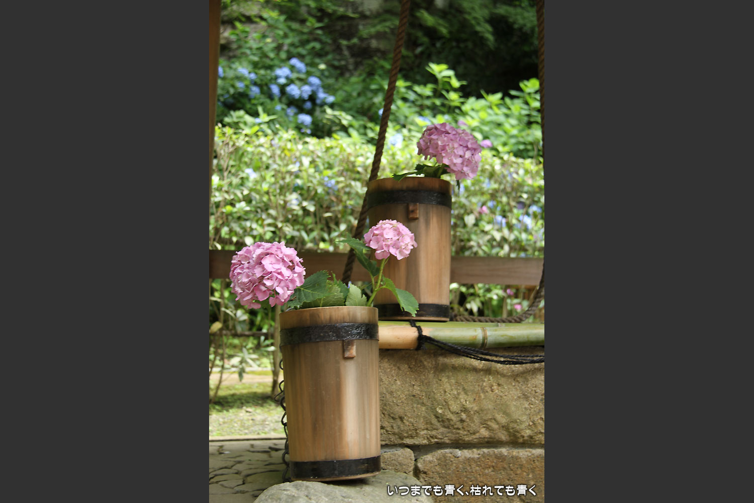 写真は、明月院と明月院に向かう道に咲く紫陽花たちです。