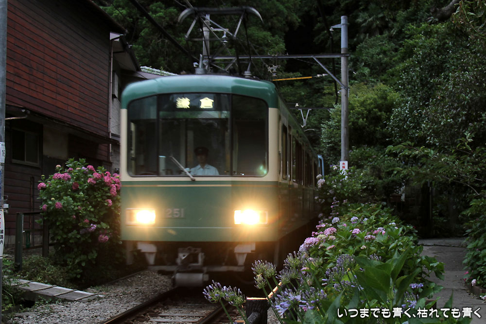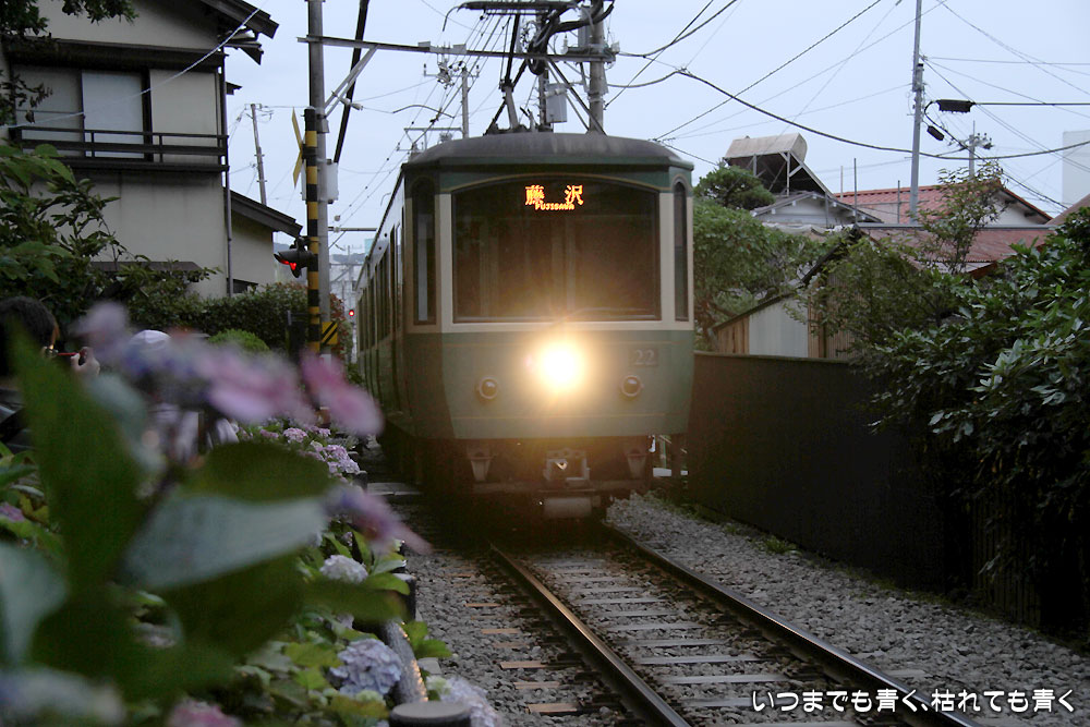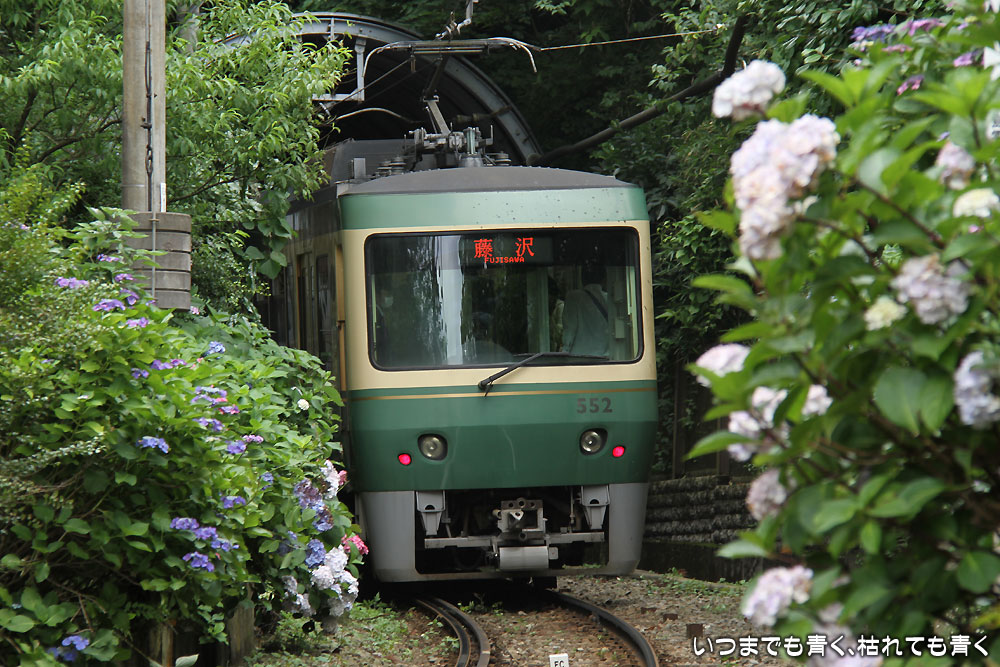 鉄道写真鎌倉、紫陽花といえば、忘れてはいけないのが江ノ電と紫陽花。
