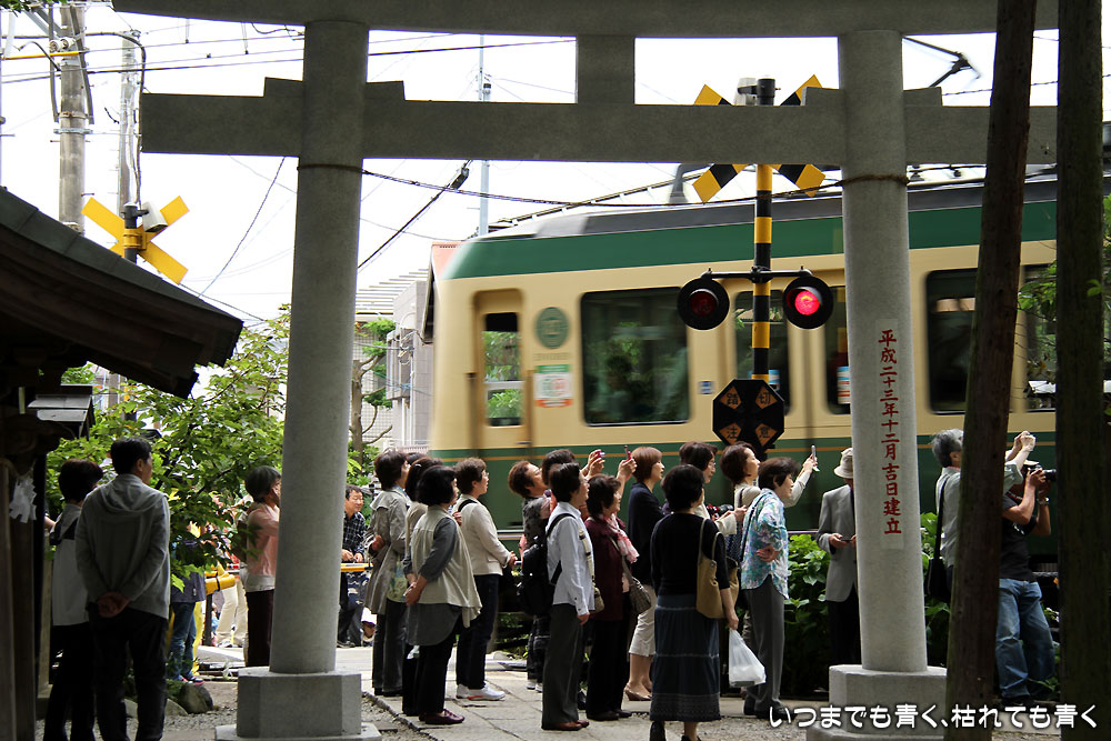 私が行った日は平日の月曜日だたので、人はそれほど多くはなかったですが、それでも人をいれずに撮影するのはけっこう大変でした。残念だったのは、御霊神社の江ノ電沿いの紫陽花は旬が過ぎていたこと。たくさんの紫陽花の中を車輌すれすれに走る江ノ電という絵にはなりませんでした。