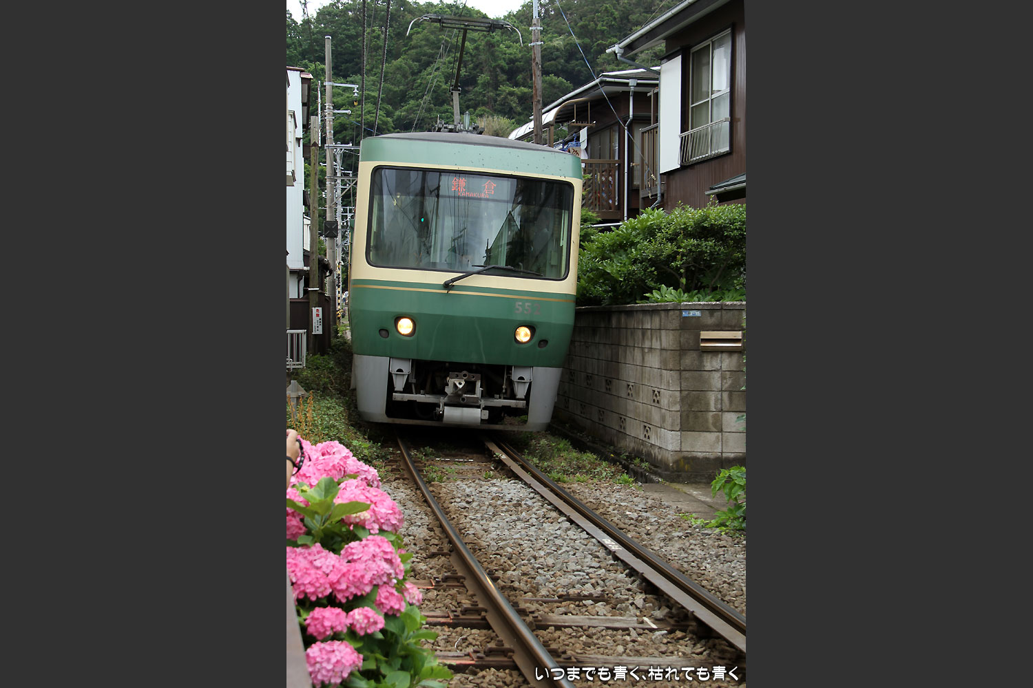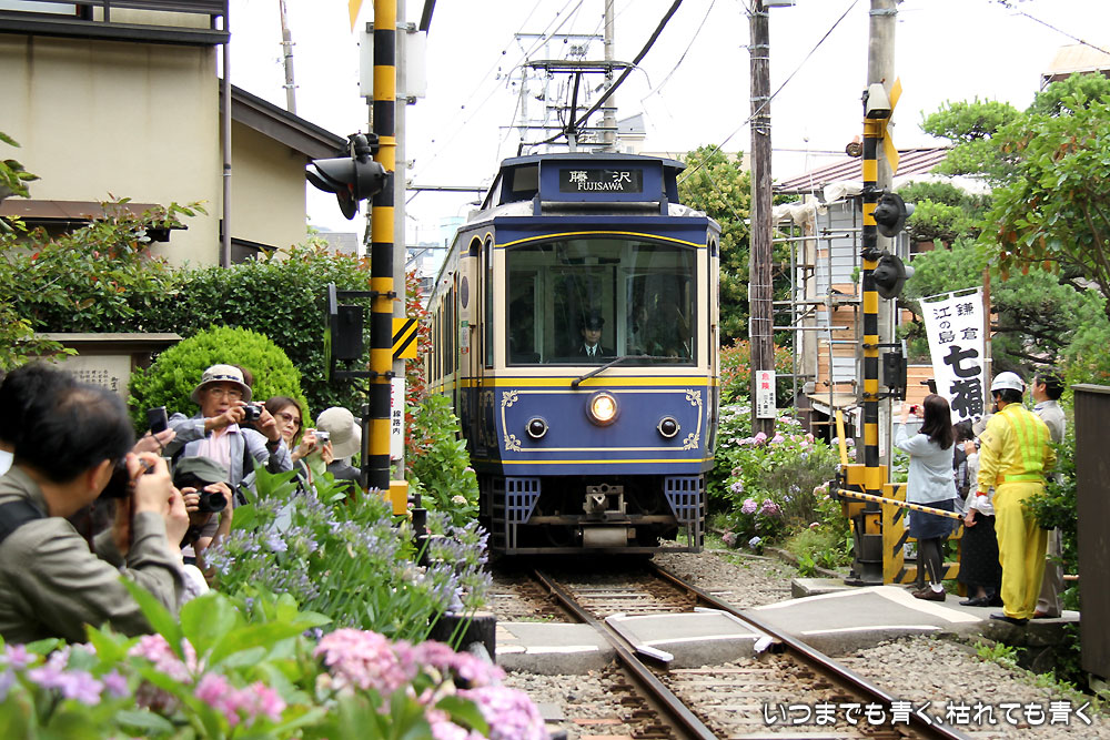 鎌倉、紫陽花といえば、忘れてはいけないのが江ノ電と紫陽花。