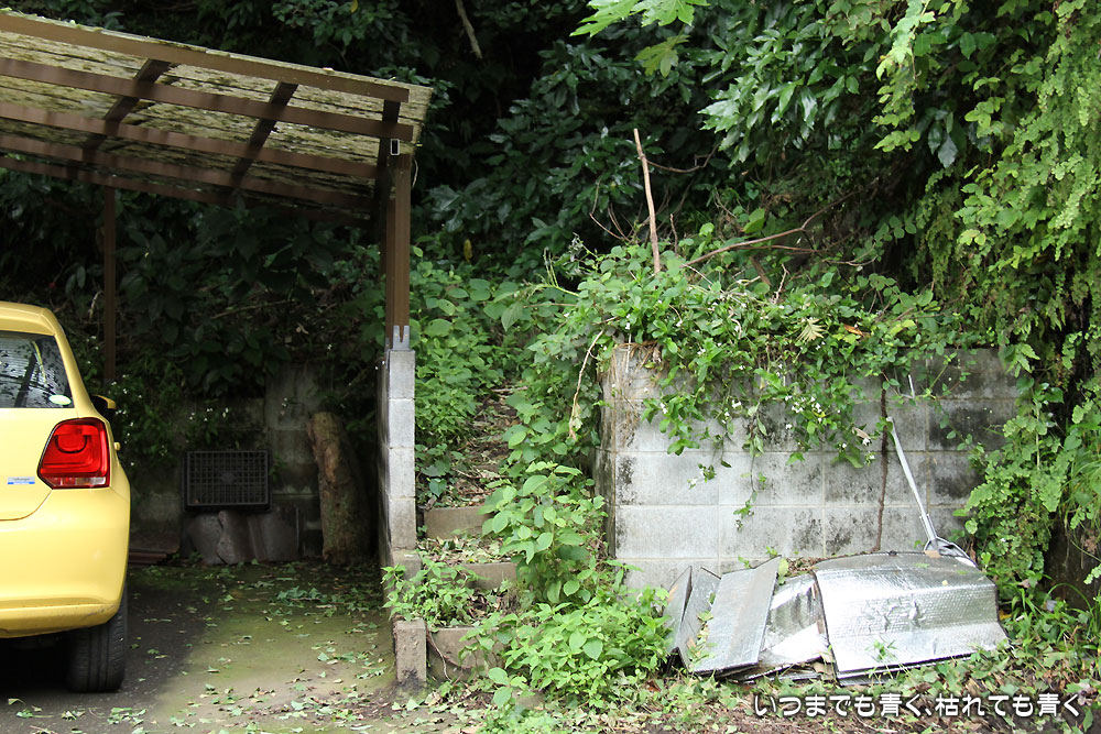 ![]() ガレージ横の階段が入口 | ![]() これを登れと!? |
