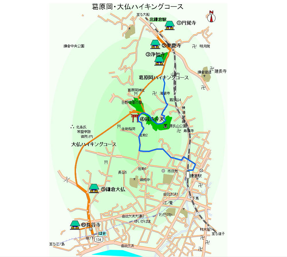 という歌詞の通り、源氏山から北鎌倉へ抜けるということ。