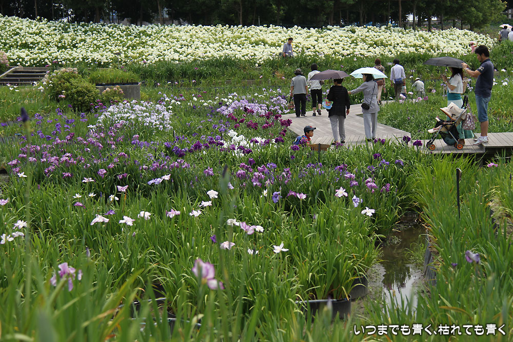 相変わらず、ありきたりの構図の写真ですが、花菖蒲苑の雰囲気をお楽しみください。