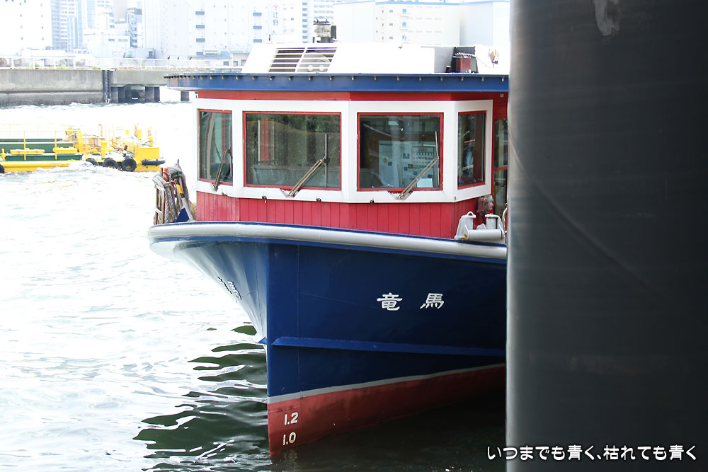 ![]() 日の出桟橋の看板 | ![]() 水上バス・竜馬号 |