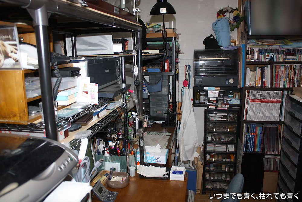 作業は大変でした。下の写真のようにモノがあふれるような状態でしたので、三つのデスクをすべて入替えるための段取りを考えながら、毎夜毎夜汗だくでモノの移動と机の解体と組み立ての繰り返しでした。まだまだすべてのモノを納めきれていませんが、ここまでくると後は片付けながらボチボチやっていけばなんとかなるメドが見えてきました。