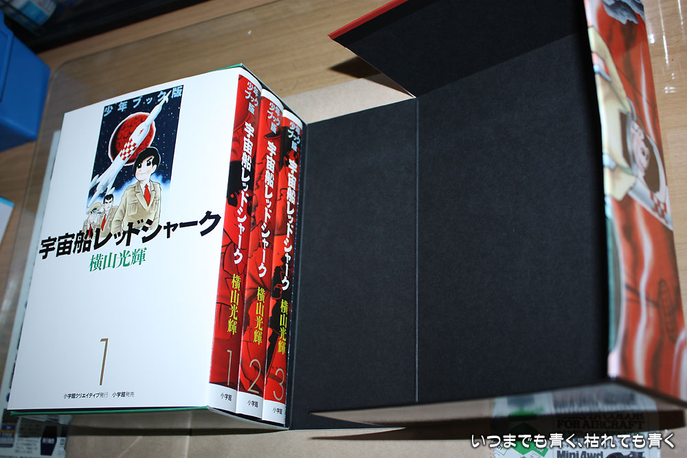 「宇宙船レッドシャーク」限定BOX 横山光輝マンガ 2012年7月31日(火) 23:59 昨日、またまたこういうものを買ってしまいました。 オジサンは完全にカモになってしまっています。 そういうのを見越してか、なんだかだんだんと価格も上がってきているような気がします。 でも、子供の頃にわくわくしながら見ていたものが、こうして限定版BOXで出されると高くてもついついね~。 横山光輝の熱烈ファンの悲しいサガです。