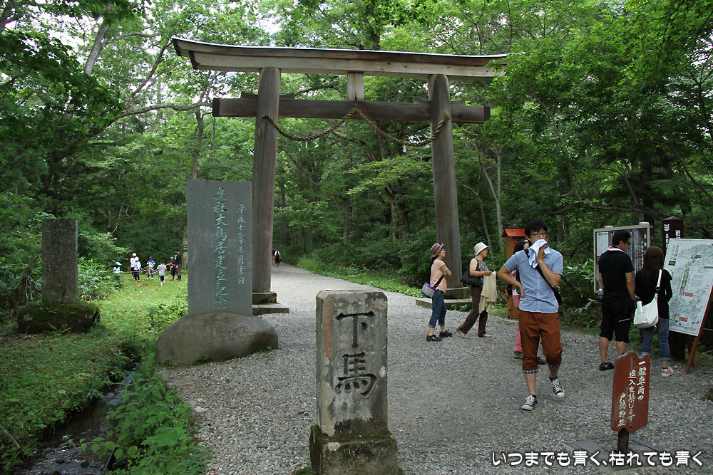 奥社と九頭龍社にお参りして入口に戻ると、それだけで4kmは歩いたことになります。さすがに中社まではさらに2kmくらいあるので車で移動することにします。